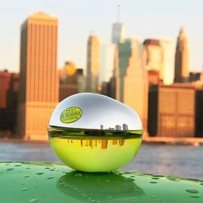 Design ou Praticidade: Frasco de 100ml em formato de maçã verde, com tampa prateada, é portátil, elegante e reflete o conceito urbano da DKNY.