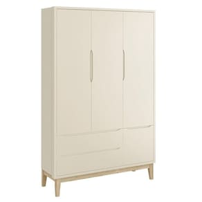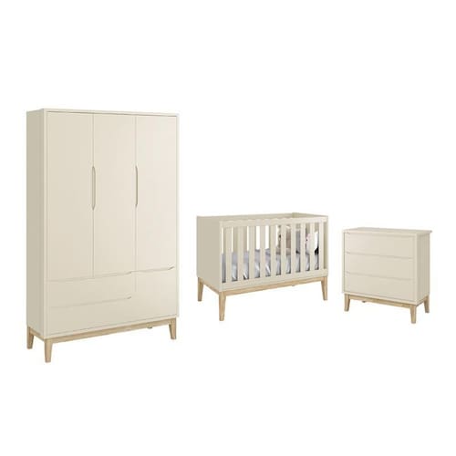 Dormitório Classic 3 Portas e Cômoda 3 Gavetas com Pés Madeira Natural - Reller Móveis - Bege Claro