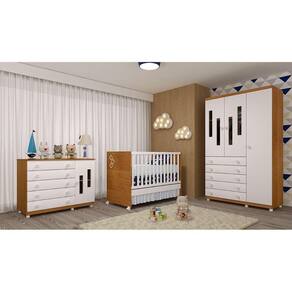 Jogo de quarto infantil Evolution da Tcil Móveis, com um design lindo e sofisticado, deixando o ambiente ainda mais moderno e aconchegante. Sua estrutura em MDF, feito com material ecológicamente correto, para melhor durabilidade e resistência às peças, pintura com excelente acabamento UV. Composto por gavetas externas com corrediças telescópicas, rodízios em PVC, cabideiro em alumínio, puxadores em PVC, portas em acabamento PU, estrado em ripas multilaminadas e grades fixa em PVC. Uma ótima opção para o quarto do seu filho!