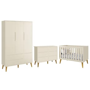 O Dormitório Completo Infantil Theo é baseado no estilo retrô, traz consigo conceitos de elegância, charme e modernidade. Conta com um belíssimo Guarda-Roupa com excelentes repartições internas para roupinhas ficarem sempre organizadas. A Cômoda 6 gavetas é um ótimo auxilio para o guarda-roupa, oferece espaço para roupas dobráveis e pequenos acessórios. E para completar o Berço se transforma em uma charmosa mini cama, acompanhando o desenvolvimento do seu filho e auxiliando na transição do berço para caminha. O quartinho do bebê vai ficar muito mais aconchegante com esse conjunto.