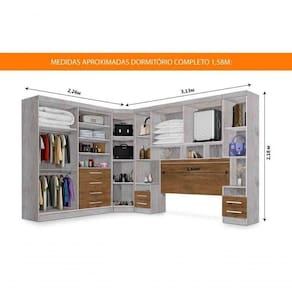 Dormitório Completo Georgia Ja Avelã / Jequitibá Para Cama Box 1,58m Queen Avelã / Jequitibá Dormitório Completo Georgia JA Avelã / Jequitibá Para Cama Box 1,58M Queen DESCRIÇÃO: A linha de Quartos Modulados J&A possui um excelente padrão de qualidade com acabamento em alto padrão combinando com qualquer ambiente agregando beleza e sofisticação. | MODELO: Dormitório de canto Completo Georgia para cama box de 1,58m | MARCA: J&A Móveis | COR: Avelã / Jequitibá | MEDIDAS LADO DIREITO: A:218cm L:313cm P:45cm | MEDIDAS LADO ESQUERDO: A:218cm L:226cm P:45cm | OBS: Camabox e objetos decorativos não estão inclusos no preço anunciado. | Aviso: A ESPLANADA MÓVEIS se responsabilizará pela entrega dos produtos adquiridos até a porta de entrada ou portaria do endereço indicado. Esclarecemos que não nos responsabilizamos por montagens, desmontagens e instalações, ficando assim sob responsabilidade d Cor: Avelã / Jequitibá