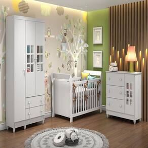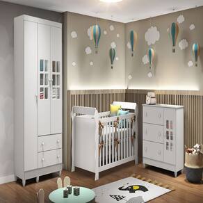 O lugar onde seu pequeno vai crescer e aprender coisas novas todos os dias merece ter uma mobília com bom gosto e charme impecáveis, né? Os móveis que compõem o Quarto Maria são daqueles tipos de peça que, além de ajudar na organização da rotina, ainda deixam o ambiente muito mais agradável e com uma decoração leve - o guarda-roupa e a cômoda tem estrutura que oferece compartimentos para as roupinhas, sapatos e até brinquedos da criança, enquanto o berço proporciona noites tranquilas e seguras. A cor das peças oferece a característica arrojada que permite combinação com outros tons, padrões de estampa e até aquele personagem que seu filho ama. Daí é só comprar um colchão aconchegante e deixar o espaço do jeitinho que essa pessoa tão importante merece! Ambiente Principal: Quarto Infantil Complexidade da Montagem: Média: pode ser montado por mais de uma pessoa e/ou necessite de maior conhecimento para montagem Cor: Branco Brilho Cor do Produto: Branco Brilho Escala de Brilho: Brilhante Linha ou Coleção: Maria Manual de Montagem e Instalação: https://cdn2.madeiramadeira.com.br/atributo/carolina-baby/1674516-70028-cb-017-roupeiro-3-pts.pdf Marca: Carolina Baby Material Principal: MDF E MDP Medida de Cada Item: Berço: 89cm x 78cm x 154cm, Cômoda: 92cm, 95cm, 40cm, Guarda Roupa:190 cm, 40cm, 94cm modular: Sim Necessita Montagem: Sim Origem do Produto: Nacional Peso: Berço: 33,1, Cômoda: 28,5, Guarda Roupa: 47 Recomendações de Uso, Manutenção e Limpeza: Limpar com pano seco Sistema de Montagem: Parafusos + Cavilhas Suporta Até (kg): Berço: 50kg ,Cômoda: 18 kg, Guarda Roupa: 28 kg
