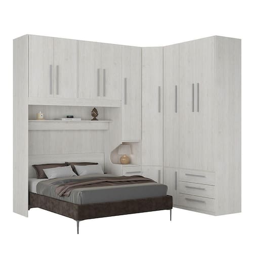 Dormitório De Casal 1218 Direito Carvalho Claro * Colchão, cama e itens de decoração não estão inclusos. Imagens meramente ilustrativas. Ideal para casais que procuram de um dormitório com bom espaço interno e o mesmo tempo compacto para os ambientes das grandes metrópoles. - 01 Guarda-roupa de 4 e 3 gavetas modelo 1249; - 01 Armário de Canto Sextavado modelo 1231; - 01 Guarda-roupa de 1 porta e 3 gavetas com mesa de cabeceira embutida modelo 1416 direito; - 01 Maleiro de casal 4 portas modelo 1226; - 01 Painel para cama Box de casal modelo 1217. ATENÇÃO. Produto vendido para ser montado conforme a ilustração (canto para lado direito). Para montagem invertida adquirir o modelo esquerdo. DIMENSÕES DO PRODUTO MONTADO - ALTURA 240 CM; - LARGURA 261 CM; - PROFUNDIDADE 51CM NOS ARMÁRIOS E 187CM LATERAL (CONSIDERAR AO MENOS 190CM PARA A CAMA NÃO INCLUSA) Vão livre de 145cm de comprimento por 110cm de altura abaixo do maleiro. Para compras de dormitórios sem a cama inclusa lembre-se sempre de verificar se a cabeceira da sua cama cabe neste espaço. Produto entregue desmontado. Requer montagem. Manual disponível no site do fabricante. Atenção: Não nos responsabilizamos, no ato da entrega, por desmontagens, subir escadas/elevadores ou transporte por guincho para apartamentos. Eventuais despesas são de responsabilidade do cliente. Confira as dimensões deste produto e certifique-se de que o mesmo passará normalmente por supostos elevadores, portas, escadas e/ou corredores de sua moradia.