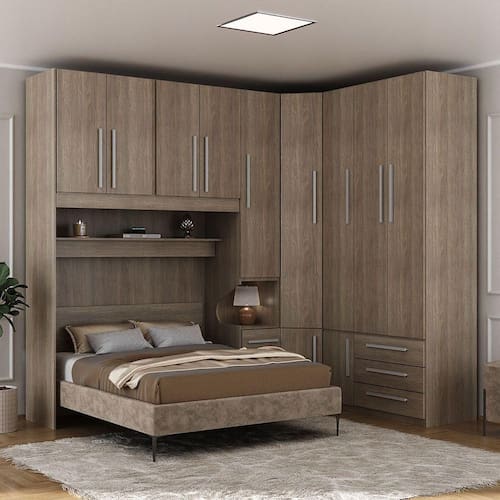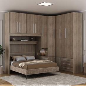 * Colchão, cama e itens de decoração não estão inclusos. Imagens meramente ilustrativas. Ideal para casais que procuram de um dormitório com bom espaço interno e o mesmo tempo compacto para os ambientes das grandes metrópoles. - 01 Guarda-roupa de 4 e 3 gavetas modelo 1249; - 01 Armário de Canto Sextavado modelo 1231; - 01 Guarda-roupa de 1 porta e 3 gavetas com mesa de cabeceira embutida modelo 1416 direito; - 01 Maleiro de casal 4 portas modelo 1226; - 01 Painel para cama Box de casal modelo 1217. ATENÇÃO. Produto vendido para ser montado conforme a ilustração (canto para lado direito). Para montagem invertida adquirir o modelo esquerdo. DIMENSÕES DO PRODUTO MONTADO - ALTURA 240 CM; - LARGURA 261 CM; - PROFUNDIDADE 51CM NOS ARMÁRIOS E 187CM LATERAL (CONSIDERAR AO MENOS 190CM PARA A CAMA NÃO INCLUSA) Vão livre de 145cm de comprimento por 110cm de altura abaixo do maleiro. Para compras de dormitórios sem a cama inclusa lembre-se sempre de verificar se a cabeceira da sua cama cabe neste espaço. Produto entregue desmontado. Requer montagem. Manual disponível no site do fabricante. Atenção: Não nos responsabilizamos, no ato da entrega, por desmontagens, subir escadas/elevadores ou transporte por guincho para apartamentos. Eventuais despesas são de responsabilidade do cliente. Confira as dimensões deste produto e certifique-se de que o mesmo passará normalmente por supostos elevadores, portas, escadas e/ou corredores de sua moradia.