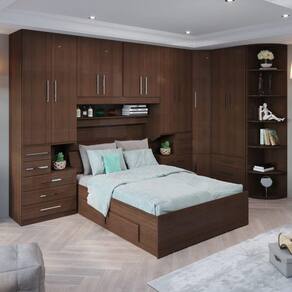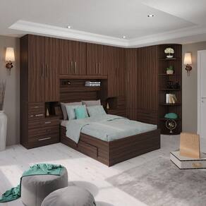 * Colchão e itens de decoração não estão inclusos. Imagens meramente ilustrativas. Dormitório de casal sem cama, versão mais completa. O dormitório é na verdade um conjunto de módulos. Você pode mudar a composição trocando ou adicionando módulos conforme seu gosto e seu espaço. – 02 Guarda-roupas de 2 portas e 5 gavetas com mesa de cabeceira embutida modelo 1224; – 01 Maleiro de casal 4 portas modelo 1226; – 01 Armário de Canto Sextavado modelo 1231; – 01 Guarda-roupa de 2 portas e 3 gavetas modelo 1228; – 01 Cantoneira com 6 prateleiras curvas modelo 1322; DIMENSÕES DO PRODUTO MONTADO - ALTURA 240 CM; - LARGURA 187 CM; - PROFUNDIDADE 51CM NOS ARMÁRIOS (CONSIDERAR O COMPRIMENTO DA SUA CAMA Vão livre de 146cm de comprimento por 110cm de altura abaixo do maleiro. Para compras de dormitórios sem a cama inclusa lembre-se sempre de verificar se a cabeceira da sua cama cabe neste espaço. Atenção: Não nos responsabilizamos, no ato da entrega, por desmontagens, subir escadas/elevadores ou transporte por guincho para apartamentos. Eventuais despesas são de responsabilidade do cliente. Confira as dimensões deste produto e certifique-se de que o mesmo passará normalmente por supostos elevadores, portas, escadas e/ou corredores de sua moradia.