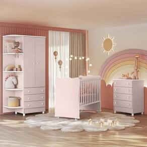 Dimensões: Tamanho do Guarda-Roupa (L x A x P): 88,5 x 191 x 47,5 cm Tamanho da Cômoda (L x A x P): 64 x 85,5 x 45 cm Tamanho do Berço (L x A x P): 68 x 96,8 x 133,5 cm Tamanho do Colchão (L x A x P): 60 x 10 x 130 cm