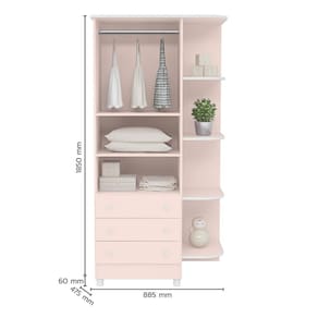 Guarda Roupa Infantil 2 Portas e 3 Gavetas Doce Sonho com Nicho e Pés - Qmovi Estrutura em MDP Pintura UV atóxica 2 Portas 3 Gavetas Corrediças metálicas Puxadores em forma de estrela Prateleiras Cabideiro Pés em PVC Maior organização e praticidade