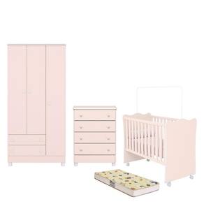 Dormitório Doce Sonho 3 Portas, Cômoda 4 Gavetas, Berço Rosa Acetinado Com Rodízio E Colchão D18 - Qmovi Rosa Acetinado Dormitório Infantil Doce Sonho 3 Portas, Cômoda 4 Gavetas, Berço com Rodízio e Colchão D18 - Qmovi Com o Dormitório Infantil Doce Sonho você terá maior funcionalidade e elegância no quarto do bebê. Ele conta com Guarda-Roupa e a Cômoda Doce Sonho com amplo espaço para guardar e organizar os pertences de forma funcional para o dia a dia. Seus puxadores exclusivos em forma de estrela vão transformar o ambiente deixando-o mais divertido e charmoso. Já o Berço Doce Sonho foi projetado para proporcionar a e o conforto que seu filho merece. Com um design clássico e delicado, ele garante beleza e aconchego para o ambiente. E para completar o Colchão Supreme da Gazin fica responsável pelas noites tranquilas e agradáveis de sono. Uma escolha de amor com o seu pequeno. Guarda Roupa Infantil 3 Portas e 2 Gavetas Doce Sonho com Pés - Qmovi - Estrutura em MDP - Pintura UV atóxica - 3 Portas - 2 Gavetas - Corrediças metálicas - Puxadores em forma de estrela - Prateleiras - Cabideiro - Pés em PVC - Maior organização e praticidade