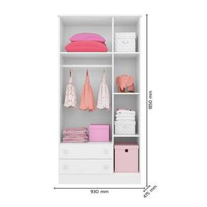 Dimensões: Tamanho do Guarda-Roupa (L x A x P): 93 x 185 x 47,5 cm Tamanho da Cômoda (L x A x P): 64 x 79,5 x 45 cm Tamanho do Berço (L x A x P): 75 x 77 x 133,2 cm Tamanho do Colchão (L x A x P): 70 x 10 x 130 cm
