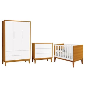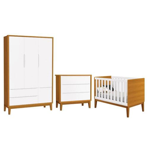 Dormitório Infantil Classic 3 Portas, Cômoda 3 Gavetas e Berço com Pés Amadeirado - Reller Móveis O Dormitório Infantil Classic é baseado no estilo clean, traz consigo conceitos de elegância e charme. Conta com um belíssimo Guarda-Roupa Classic com excelentes repartições internas para roupinhas ficarem sempre organizadas. Uma Cômoda Classic 3 gavetas que é um ótimo complemento na hora da organização, ela oferece espaço para roupas dobráveis e pequenos acessórios. E para completar um Berço Mini Cama Classic, que acompanha o desenvolvimento do seu filho e auxilia na transição do berço para caminha. A escolha certa para um ambiente aconchegante e charmoso.