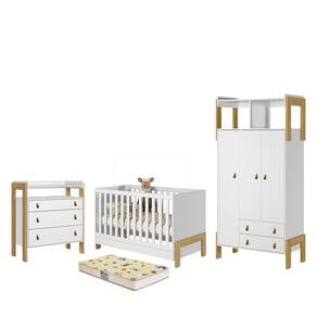 Dimensões: Tamanho do Guarda-Roupa (L x A x P): 97 x 191 x 45 cm Tamanho da Cômoda (L x A x P): 88,2 x 93 x 42 cm Tamanho do Berço (L x A x P): 74 x 85,5 x 138 cm Tamanho do Colchão (L x A x P): 70 x 10 x 130 cm