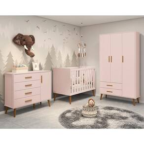 Dormitório Infantil Isis Guarda Roupa 3 Portas, Cômoda 1 Porta e Berço com Colchão D18 - Reller Móveis O Dormitório Infantil Isis é composto por um Guarda-Roupa, uma Cômoda e um Berço com Colchão. O Guarda Roupa Isis 3 Portas e 2 Gavetas e a Cômoda Infantil Isis 1 Porta e 4 Gavetas ambos oferecem um amplo espaço para organizar os pertences do seu bebê, seus puxadores são em madeira e suas gavetas possuem um amplo espaço interno para guardar as roupinhas do bebê dobradas. Já o Berço Americano Isis se enquadra em todos os termos de qualidade, segurança e durabilidade do produto, pois possui certificação pelo INMETRO e o Colchão Supreme da Gazin foi projetado para que seu bebê tenha confortáveis noites de sono. A elegância do estilo retrô aliada ao conforto.