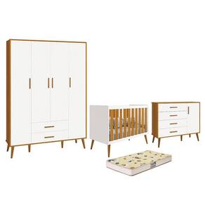 Dormitório Infantil Isis Guarda Roupa 4 Portas, Cômoda 1 Porta e Berço com Colchão D18 - Reller Móveis O Dormitório Infantil Isis é composto por um Guarda-Roupa, uma Cômoda e um Berço com Colchão. O Guarda Roupa Isis 4 Portas e 2 Gavetas e a Cômoda Infantil Isis 1 Porta e 4 Gavetas ambos oferecem um amplo espaço para organizar os pertences do seu bebê, seus puxadores são em madeira e suas gavetas possuem um amplo espaço interno para guardar as roupinhas do bebê dobradas. Já o Berço Americano Isis se enquadra em todos os termos de qualidade, segurança e durabilidade do produto, pois possui certificação pelo INMETRO e o Colchão Supreme da Gazin foi projetado para que seu bebê tenha confortáveis noites de sono. A elegância do estilo retrô aliada ao conforto.