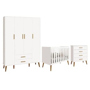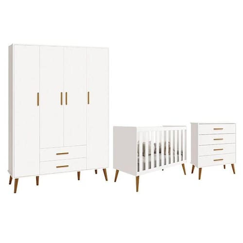Dormitório Infantil Isis Guarda Roupa 4 Portas, Cômoda E Berço Branco - Reller Móveis Branco