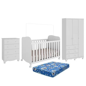 Dormitório Infantil Júnior 3 Portas, Cômoda e Berço Uli com Colchão Baby Physical - Móveis Peroba - Branco