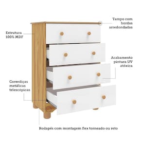 Cômoda Infantil Júnior New 4 Gavetas - Móveis Peroba