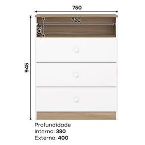 Tamanho da Cômoda (L x A x P): 75 x 94,5 x 40 cm