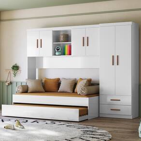 Dormitório Infantil Ônix Guarda Roupa, Aéreo 4 Portas e Bicama - Peternella Móveis