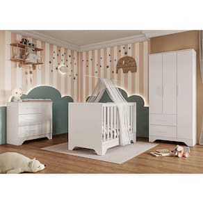 O Dormitório Infantil Popy Retrô Plus é a escolha ideal para quem busca um ambiente completo, funcional e cheio de charme para o quarto do bebê. O guarda-roupa conta com 3 portas, 2 gavetas com corrediças telescópicas, cabideiro metálico e prateleiras internas, oferecendo amplo espaço para organização. A cômoda com 1 porta e 3 gavetas também possui corrediças telescópicas, prateleira interna e acabamento retrô com puxadores em MDF revestido. O berço Popy Retrô 3 em 1 acompanha o crescimento da criança, podendo ser utilizado como mini cama ou mini sofá. Fabricado em MDF com pintura UV atóxica e certificado pelo INMETRO, possui grades fixas, cantos arredondados e rodapés no estilo retrô. E para completar o Colchão Supreme da Gazin vai proporcionar noites mais tranquilas a aconchegantes. Um conjunto completo que une segurança, estilo e praticidade.