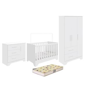 Dormitório Infantil Popy Retrô Plus Guarda Roupa, Cômoda e Berço com Colchão Supreme - Móveis Peroba