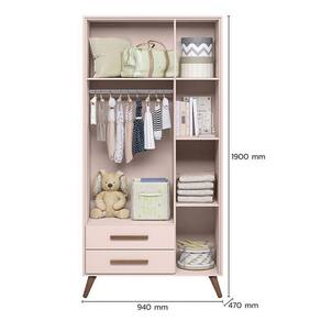 Guarda Roupa Infantil Q Encanto Retrô 3 Portas e 2 Gavetas - Qmovi Estrutura MDP Pintura UV 3 Portas Dobradiças metálicas 6 Prateleiras 2 Gavetas Corrediças metálicas Sistema antitombamento Puxadores em MDF Pés torneados em madeira de eucalipto design retrô Amplo espaço interno