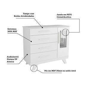 Cômoda Infantil Retrô 1 Porta com Janela e 4 Gavetas - Móveis Peroba