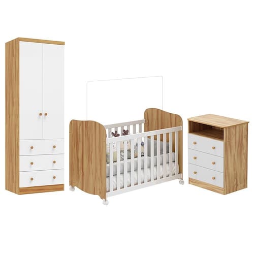 Dormitório Infantil Smim Guarda Roupa, Cômoda e Berço - Móveis Peroba