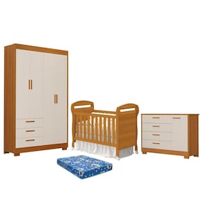 Dormitório Infantil Zaki Guarda Roupa, Cômoda e Berço Danny com Colchão Baby Physical - Reller Móveis