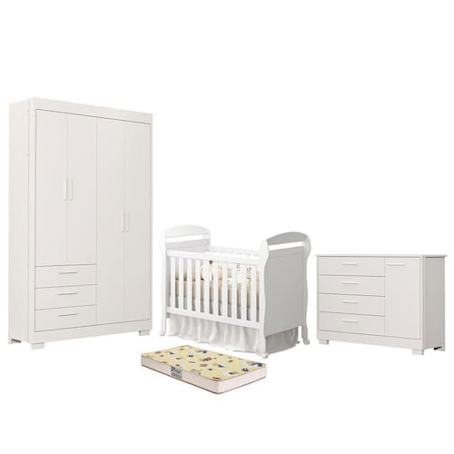 Dormitório Infantil Zaki Guarda Roupa, Cômoda e Berço Danny com Colchão Supreme - Reller Móveis