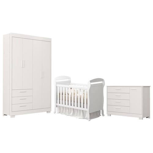 O Dormitório Zaki é composto por 3 móveis funcionais e elegantes: o guarda-roupa Infantil com 4 portas, 3 gavetas com corrediças telescópicas, cabideiro metálico e pés em PVC, a cômoda com 1 porta, 4 gavetas e sistema antitombamento, e o versátil Berço Danny, que acompanha o crescimento do bebê. O berço é no padrão americano, com grade fixa, 3 níveis de altura do estrado, rodízios (2 com trava), suporte para mosquiteiro e função sofázinho. Todos os itens possuem estrutura em MDF e pintura UV atóxica, garantindo durabilidade e segurança.