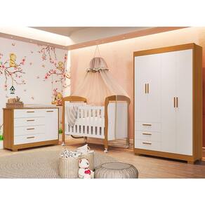 O Dormitório Zaki é composto por 3 móveis funcionais e elegantes: o guarda-roupa Infantil com 4 portas, 3 gavetas com corrediças telescópicas, cabideiro metálico e pés em PVC, a cômoda com 1 porta, 4 gavetas e sistema antitombamento, e o versátil Berço Danny, que acompanha o crescimento do bebê. O berço é no padrão americano, com grade fixa, 3 níveis de altura do estrado, rodízios (2 com trava), suporte para mosquiteiro e função sofázinho. Todos os itens possuem estrutura em MDF e pintura UV atóxica, garantindo durabilidade e segurança.