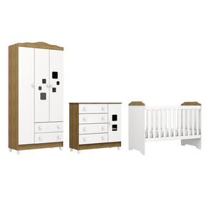 A escolha ideal, para as mamães que buscam segurança e conforto. Um móvel leve e delicado em seu desenho, mas que oferece resistência e estabilidade em sua estrutura. a cômoda é fabricada em MDP e ainda conta com um sistema de anti-tombamento e corrediça telescópica nas gavetas. Um guarda-roupa cheio de estilo para deixar o quarto do seu filho ainda mais encantador. O berço certo para deixar o quartinho do seu bebê ainda mais especial. A combinação perfeita de seu desenho delicado com a resistência de suas peças, garantindo toda segurança e conforto para o seu filho. Móveis harmoniosos com qualidade para o quarto do seu baby. Ambiente Principal: Quarto Infantil Complexidade da Montagem: Alta: deve ser montado por um montador especializado Cor: Branco Fosco com Amadeirado Cor do Produto: Branco Fosco com Amadeirado Escala de Brilho: Brilhante Manual de Especificação Técnica: https://cdn2.madeiramadeira.com.br/atributo/carolina-baby/1715865-6221-berCo-mel-grade-pvc-10652.pdf Manual de Montagem e Instalação: https://cdn2.madeiramadeira.com.br/atributo/carolina-baby/1715863-10350-roupeiro-03-portas-carol-mel.pdf Material Principal: MDF E MDP Medida de Cada Item: Berço: 101cm x 76cm x 133cm, Cômoda: 92cm, 95cm, 40cm, Guarda Roupa:198 cm, 40cm, 94cm modular: Sim Necessita Montagem: Sim O Conjunto Contém: Cama/Cômoda/Guarda-Roupa Origem do Produto: Nacional Peso: Berço: 47, Cômoda: 29,2, Guarda Roupa: 47 Recomendações de Uso, Manutenção e Limpeza: Limpar com pano seco Sistema de Montagem: Parafusos + Cavilhas Suporta Até (kg): Berço: 50kg ,Cômoda: 18 kg, Guarda Roupa: 28 kg
