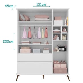 Dimensões: Tamanho do Guarda-Roupa (L x A x P): 131 x 200 x 45 cm Tamanho da Cômoda (L x A x P): 110 x 89 x 45 cm Tamanho do Berço (L x A x P): 74 x 92 x 133 cm Tamanho do Colchão (L x A x P): 70 x 10 x 130 cm