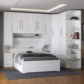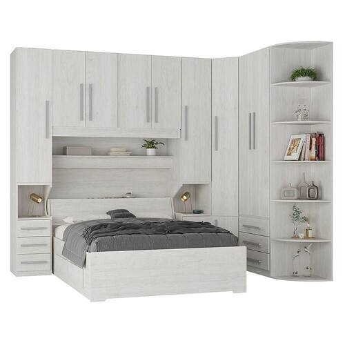 Dormitório Queen Size Completo 1219 Carvalho Claro * Colchão e itens de decoração não estão inclusos. Imagens meramente ilustrativas. Ideal para casais que procuram de um dormitório robusto, com bom espaço interno, com bom aproveitamento do cômodo, cada dia mais compacto nos ambientes das grandes metrópoles. 02 Guarda-roupas de 1 porta e 3 gavetas com mesa de cabe embutida modelo 1416; 01 Maleiro de casal 4 portas modelo 1226 queen size; 01 Armário de Canto Sextavado 1231; 01 Guarda-roupa de 2 portas e 3 gavetas modelo 1228; 01 Cantoneira com 6 prateleiras curvas modelo 1322; 01 Cama de Casal Conv para colchão 158198 cm com Baú e 4 gavetas modelo 1251; - Chapa de 15mm de espessura; DIMENSÕES DO PRODUTO MONTADO - ALTURA 240 CM; - LARGURA 318,4 CM; - PROFUNDIDADE 51CM NOS ARMÁRIOS E 227CM NA CAMA Vão livre de 166cm de comprimento por 110cm de altura abaixo do maleiro. Para compras de dormitórios sem a cama inclusa lembre-se sempre de verificar se a cabeceira da sua cama cabe neste espaço. Produto entregue desmontado. Requer montagem. Manual disponível no site do fabricante. Atenção: Não nos responsabilizamos, no ato da entrega, por desmontagens, subir escadas/elevadores ou transporte por guincho para apartamentos. Eventuais despesas são de responsabilidade do cliente. Confira as dimensões deste produto e certifique-se de que o mesmo passará normalmente por supostos elevadores, portas, escadas e/ou corredores de sua moradia.