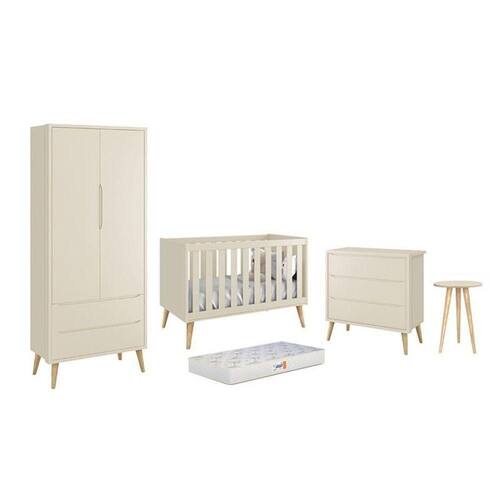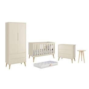 Dormitório Theo 2 Portas, Mesa De Canto Areia Fosco Com Pés Madeira Natural E Colchão D18 - Reller Móveis Areia Fosco Dormitório Theo 2 Portas, Mesa de Canto com Pés Madeira Natural e Colchão D18 - Reller Móveis O Dormitório Theo conta com um design moderno, trazendo elegância e sofisticação para o quartinho do bebê. Ele é composto por um Guarda-Roupa e uma cômoda, ambos com amplo espaço interno. Um Berço que acompanha o desenvolvimento do seu filho se transformando em uma linda mini cama. Um Colchão D18 da Gazin, priorizando o conforto na hora do soninho e uma mesa de apoio deixando o ambiente mais completo e funcional. Guarda-Roupa Infantil Theo 2 Portas - Reller Móveis - 100% MDF - 02 Portas - 02 Gavetas - 03 Divisões Internas - Cabideiro Metálico - Corrediças Telescópicas - Maior Organização, espaço e praticidade - Puxadores embutido - Acabamento UV (Atóxico) - Pés Pontiagudos em Madeira