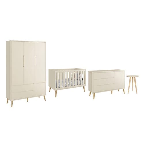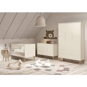 O Dormitório Theo conta com um design moderno, trazendo elegância e sofisticação para o quartinho do bebê. Ele é composto por um Guarda-Roupa e uma cômoda, ambos com amplo espaço interno. Um Berço que acompanha o desenvolvimento do seu filho se transformando em uma linda mini cama. E uma mesa de apoio deixando o ambiente mais completo e funcional.