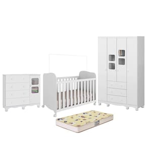 Dormitório Uli Guarda Roupa 4 Portas, Cômoda e Berço com Colchão Supreme - Móveis Peroba