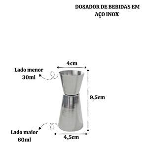 Características principais: 1. Material: Aço inoxidável, o que confere durabilidade, resistência à corrosão e facilidade de limpeza. O inox também é um material higienizado e seguro para contato com alimentos e bebidas. 2. Capacidade: O dosador possui duas medidas distintas, geralmente 30 ml e 60 ml, oferecendo versatilidade para ajustar a quantidade de ingredientes conforme a necessidade da receita ou preparação. 3. Formato: O design é geralmente cilíndrico, com uma base mais larga que pode se estreitar ligeiramente para o topo, facilitando o despejo do líquido. A forma permite um controle preciso do volume de bebida vertido. 4. Usabilidade: Ideal para quem prepara coquetéis e drinks, permitindo a dosagem exata dos líquidos para equilibrar as receitas e garantir a proporção correta dos ingredientes. 5. Durabilidade: Devido à resistência do inox, o dosador é altamente durável e pode ser utilizado em ambientes de alta rotatividade, como bares e restaurantes, sem perder sua integridade. 6. Design e Estilo: Além de ser funcional, o dosador de inox também pode ter um acabamento elegante, adequado para compor a decoração de bares ou cozinhas mais modernas.