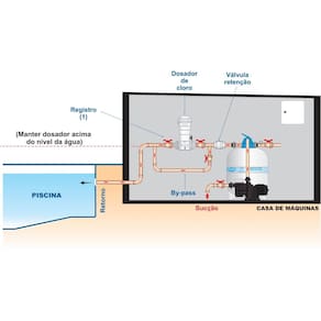 Este acessório deverá ser instalado na tubulação de retorno da piscina, após o filtro e o aquecedor, (se houver). Sempre que possível é recomendável que se instale o clorador acima do nível da água da piscina.