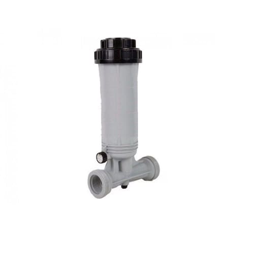 Dosador De Cloro Automático Em Pastilhas Para Caixa D' Água E PiscinasEste clorador automático foi projetado para a instalação na linha de retorno de sua piscina ou caixa d'água. Destina-se ao uso somente de tabletes ou pastilhas de cloro Tricloro-S-Triazina-triona de baixa dissolução.Clorador Dosador Cloro de Pastilhas Automatico Este clorador automático foi projetado para a instalação na linha de retorno de sua piscina ou caixa d'água. Destina-se ao uso somente de tabletes ou pastilhas de cloro Tricloro-S-Triazina-triona de baixa dissolução. Nenhum outro tipo de produto químico deve ser utilizado neste clorador. Especificações: Com regulagem de entrada e saída de água: SimCompartimento Interno para Pastilhas: 9 cmModelo: Clorador dosadorRosca externa: 7 cmRosca Interna de Conexão: 4,5 cmIndicação e Uso: Piscinas e Caixas de ÁguaObservação: Sua capacidade é para até 9 tabletes grandes de 200 gramas ou aproximadamente 1,900 kg das pastilhas menores e dispõe de uma válvula reguladora do fluxo de água através do clorador. Essa capacidade, sob condições normais, deverá proporcionar aproximadamente 14 dias de cloração contínua para piscinas com volume de 140.000 litros. Regulando o dispositivo da válvula entre FULL mais cloro e 1/8 menos cloro , você ajustará facilmente a proporção de alimentação para manter o teor residual de cloro ideal para sua piscina INSTALAÇÃO; 1. Este clorador automático é para instalação fixa na tubulação de retorno da piscina ou spa.; 2. Nunca instale o clorador antes do aquecedor de piscinas. Se não houver aquecedor, instale-o depois do filtro. Danos ao filtro ou ao aquecedor de piscinas poderão resultar do retorno de água com alta concentração de cloro. Para evitar isso, instale uma válvula de retenção.; 3. Este clorador é fornecido com rosca interna de 1.1/2BSP. Para sua instalação, use adaptadores de pvc marrom soldável do tipo curto de 50 mm 1.1/2 . Nunca use a rosca externa, nem aperte em demasia as conexões no corpo do clorador. Importante Antes de instalar, observe o sentido da seta indicativa existente na base do corpo do clorador, que diz respeito ao fluxo da água.; 4. A instalação do clorador pode ser tanto acima como abaixo do nível da água da piscina ou spa. DESCRITIVO TÉCNICO Dimensões do Aparelho AxPxL : 420 mm x 130 mm x 220 mm Pressão máxima: 2,25Kgf/cm² ou 32psi, enquanto que a dissolução máxima dos tabletes de cloro é de 36g/h. Composição: Plástico Itens Inclusos:- 1 Unidade Clorador Dosador Cloro de Pastilhas Automatico