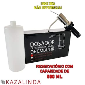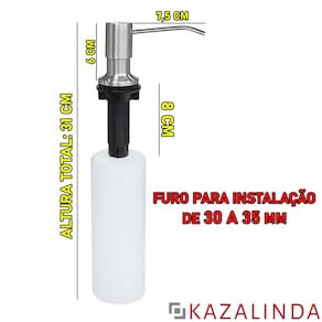 O Dosador de Sabão com Recipiente Plástico 500 ml transforma seu dia-a-dia na cozinha. Bico dosador produzido em aço inox 304. Proporciona uma limpeza mais prática e ágil. Facilita a lavagem da louça e aproveita melhor o espaço da bancada.