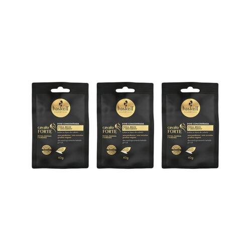 A Dose Concentrada Haskell Cavalo Forte 40g é um tratamento intensivo desenvolvido para fortalecer e revitalizar os cabelos, especialmente indicado para quem busca crescimento capilar saudável e mais resistência. Sua fórmula contém ativos poderosos, como a biotina, que auxilia no crescimento dos fios, a pantenol, que promove hidratação profunda, e a queratina, que reconstrói a fibra capilar. Além de fortalecer os cabelos, a dose concentrada confere brilho, maciez e resistência, ideal para cabelos frágeis ou que passaram por processos químicos. O produto é de fácil aplicação, garantindo resultados visíveis em pouco tempo.