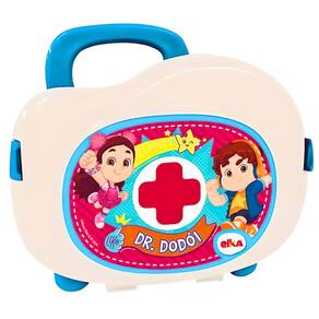 Dr. Dodói é um kit de maletinha. que vem com termômetro para medir a temperatura, otoscópio para examinar os ouvidos, estetoscópio para ouvir o coração e os pulmões, curativo para cuidar daquele machucado e até gesso para engessar um braço quebrado! Tudo isso guardados em uma maleta prática que ajuda a criança a levar a brincadeira para onde quiser!