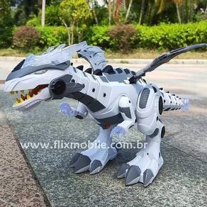 Dragão Cibernético Que Anda E Solta Fumaça Luz Som De 45Cm BrancoCyber Dragão que Solta Fumaça com Som e LuzO Cyber Dragão Tiranossauro Rex é um hybrido Robótico com movimentos realistas, ele mexe a causa, anda, mexe as asas, acende uma luzes no corpo e na boca acende uma luz vermelha no momento em que vai soltar a fumaça, cria a magia e ilusão de estar cuspindo fogo, um arraso de brinquedo que encanta até adultos.Fumaça:A fumaça é a vaporização de agua, retire a tampa da cabeça para encher o reservatório de água.Recursos:- Anda- Mexe as asas- Mexe o rabo- Luzes- Solta FumaçaEspecificações: Modelo: Cyber DragãoComposição: Plástico e MetalCódigo do fabricante: CP0081193Idade Mínima: Á partir de 3 anosCertificado INMETRO: CE-BRI/BRICS 00137-15 NM2300/2002Itens Inclusos:1 x Cyber Dragão