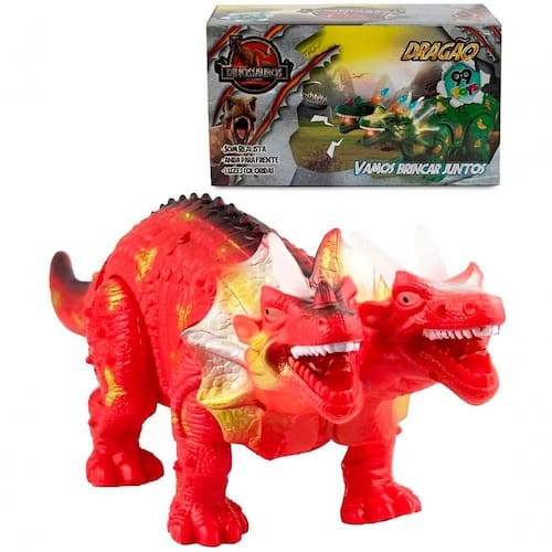 Características Gerais do Produto: - Material: Plástico - Modelo: Dinossauro Tricerátops - Cor: Verde; Vermelho - Dimensões aproximadas: Altura 13cm X Largura 10cm X Comprimento 36cm Garantia: - Garantia do site - 1 Mês