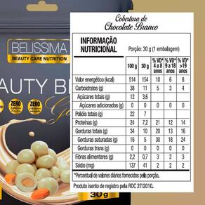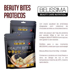 Amêndoas Drageadas Cobertura Chocolate Branco 7,2g Proteína Zero Lactose sem Adição de Açúcar para Dietas com Ingestão Controlada de Açúcares Belissima Beauty Bites Gourmet Pouch 30g