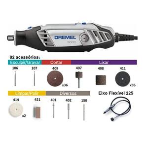 Dremel 3000: Micro Retífica + 82 Acessórios + Eixo Flexível