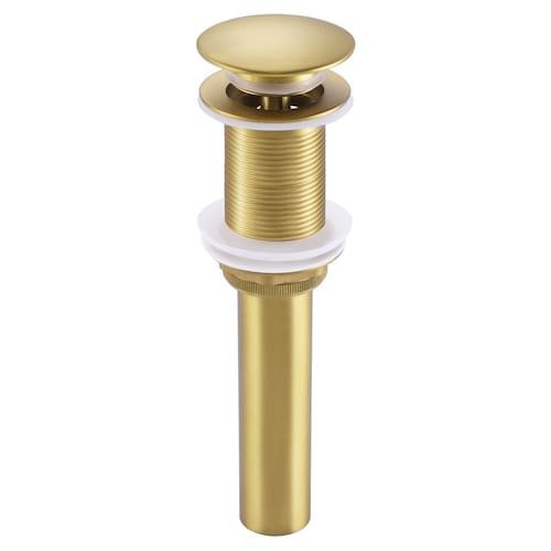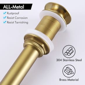 Especificações Material: aço inoxidável SUS304 Acabamento: ouro escovado Incluído na embalagem: 1 ralo de encaixe. 1 pacote de ferramentas. 1 x manual do usuário (idioma português - Todo metal - à prova de ferrugem: o dreno pop-up é feito de latão e aço inoxidável SUS304 sem nenhuma peça de plástico. O acabamento de alta qualidade resiste a arranhões, manchas, corrosão e ferrugem, então o ralo é duradouro o suficiente para servir por 10 anos ou mais. - Tamanho normal - serve na maioria das pias: O diâmetro da tampa pop-up é de 62 mm. O comprimento total do ralo da pia é de 215 mm. O diâmetro da porca da corda é de 32 mm. - Resistente o suficiente para usar por um longo tempo: nosso ralo de pia é feito de materiais de metal sólido e de alta qualidade, que resistem a rachaduras e explosões e permanecem resistentes. O corpo do tubo de drenagem é engrossado até 2 mm. Aparafusar firmemente o ralo pode evitar vazamentos. - Juntas espessas - Resistem a vazamentos: As juntas de silicone espesso de alta qualidade são ideais para vedar água e resistir à oxidação. Com as três peças de juntas de vedação de silicone, um filtro de ralo de pia de banheiro evita vazamentos de água com eficácia. - Orifício de drenagem padrão 1 3/4" (45 mm): serve para furos de pia com um diâmetro entre 1,6" (41 mm) - 1,9" (50 mm). A espessura máxima da pia é de 1,97" (50 mm). Ideal para a maioria dos vasos ou pias de montagem inferior sem transbordamento.