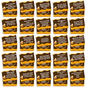 Material: papel Cor: amarelo Tamanho da embalagem: 6,6 × 1,8 × 9 cm Peso da embalagem: 0,08 kg Lista de embalagem: 1 x conjunto de jogos de cartas para beber (50 cartas) Jogo de cartas divertido para festas com bebidas — Inclui 50 cartas de desafio divertidas projetadas para trazer risadas e emoção às festas, tornando-o um quebra-gelo perfeito para amigos e reuniões sociais. Perfeitos para noites de jogos em grupo — Ideal para festas, aniversários, noites de bar ou reuniões, esses cartões interativos incentivam os jogadores a participarem de desafios divertidos e dicas hilárias para beber. Fácil de aprender e jogar — Regras simples facilitam a participação de qualquer pessoa. Os jogadores compram cartas e seguem as instruções, criando momentos espontâneos e divertidos durante a noite do jogo. Compacto e fácil de transportar — O baralho de cartas leve com uma caixa de armazenamento é fácil de transportar para festas, férias ou eventos ao ar livre, permitindo que você aproveite o jogo em qualquer lugar com os amigos. Ótimo presente para amantes de festas — Uma ideia de presente divertida e exclusiva para amigos, estudantes universitários ou anfitriões de festas que gostam de jogos interativos com bebidas e entretenimento social.