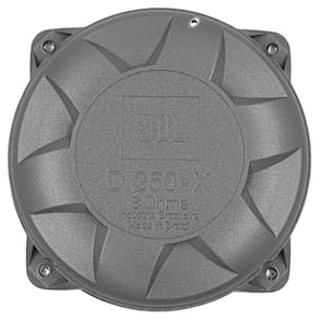 - Com garganta de uma polegada, acopla-se diretamente a todas as cornetas JBL com final 25 (HL14-25, HC23-25, etc).